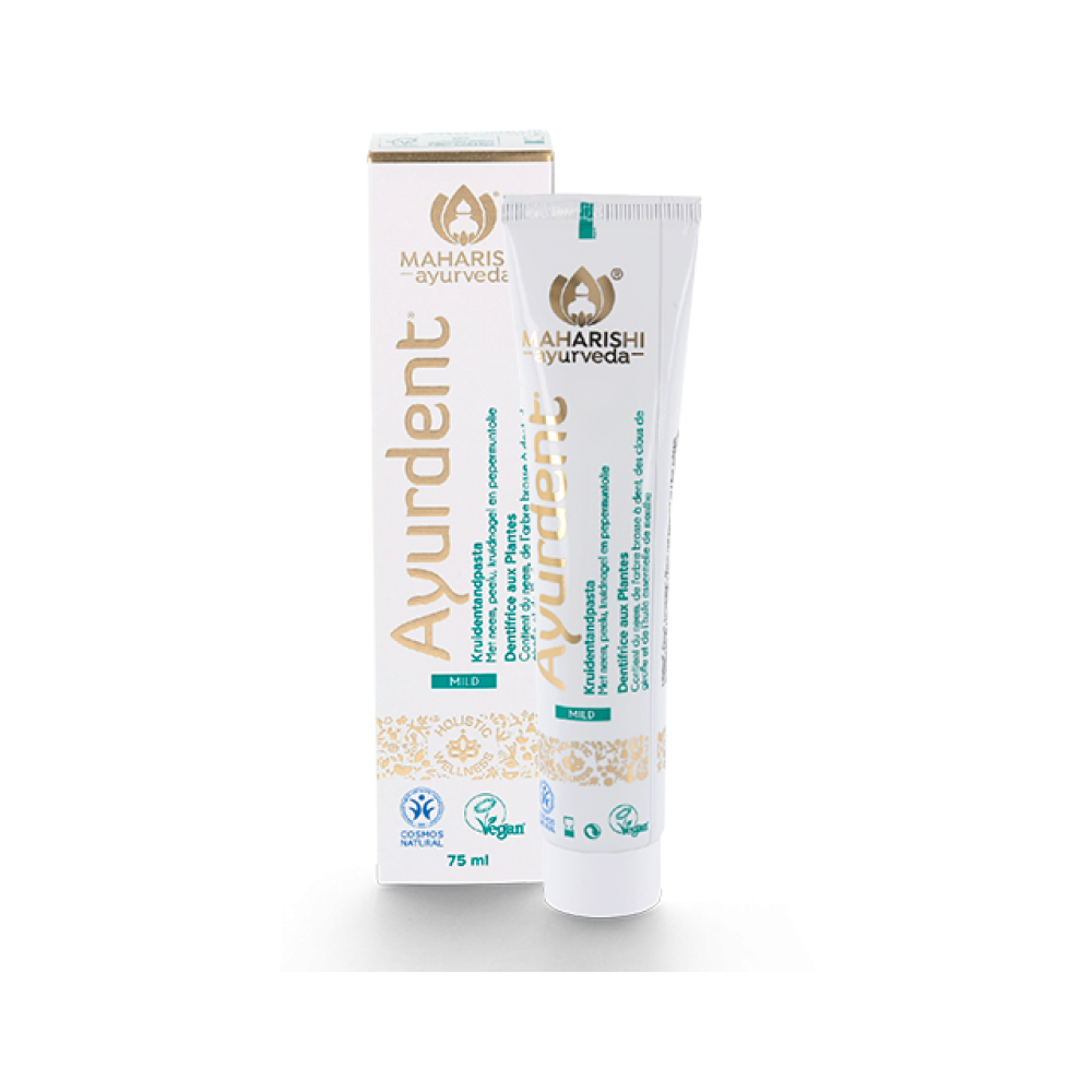 Ayurdent tandpasta bevat alleen de beste natuurlijke bestanddelen en een sterk geconcentreerde selectie van 21 ayurvedische kruiden. Triphala, neem en kruidnagelolie staan bekend om hun tandverzorgende eigenschappen. Pepermuntolie zorgt voor een langdurig frisse adem.