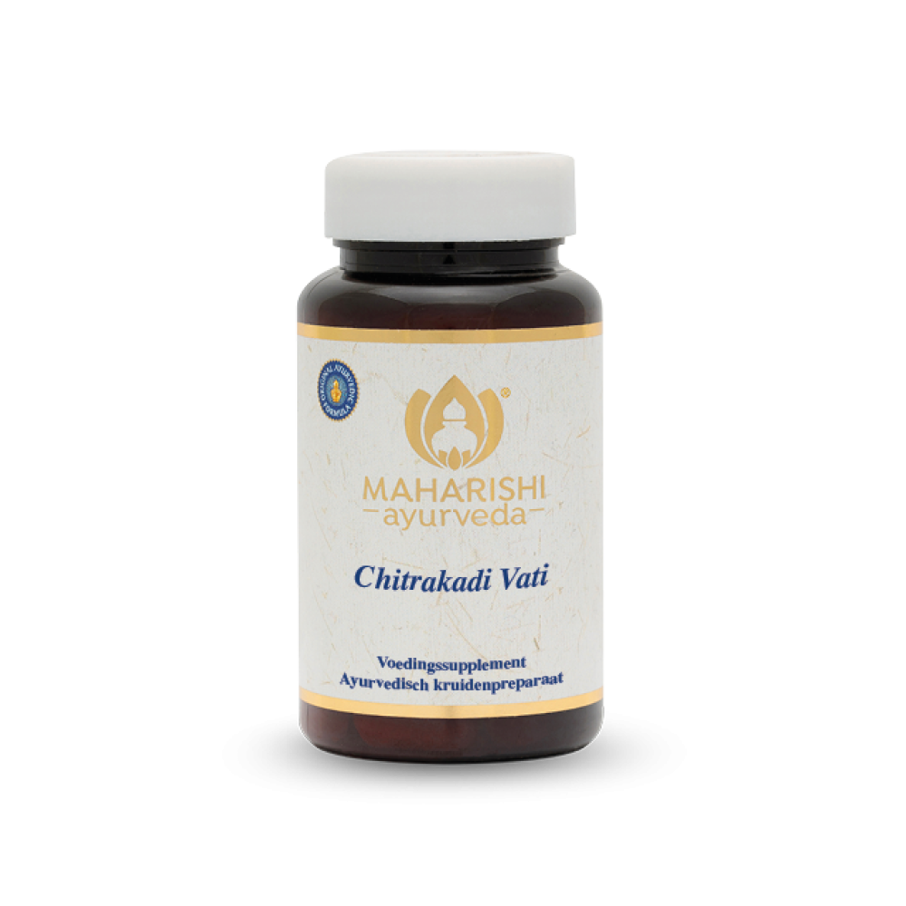 Chitrakadi Vati bevat ook veel specerijen, zoals zwarte peper, ‘pippali’ (Piper longum, de lange peper), Piper chaba, een variant van de lange peper, gember en asafoetida. Volgens de ayurveda ondersteunen al deze specerijen de spijsvertering en de agni * (het spijsverteringsvuur). Daarnaast helpen verschillende ayurvedische zouten om Pitta in evenwicht te brengen.