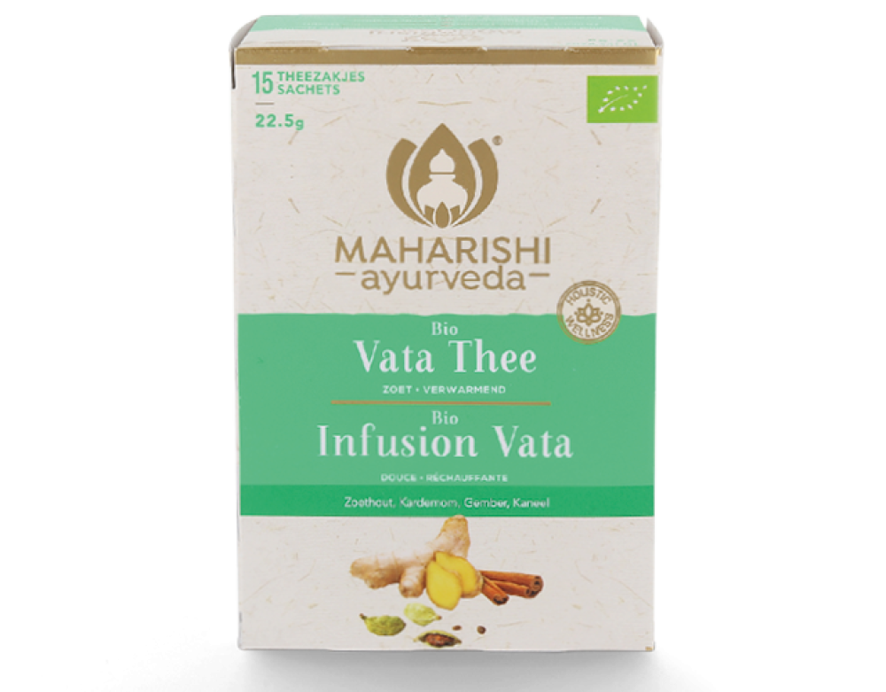Theemelanges van Maharishi Ayurveda dragen bij aan een holistisch evenwicht. Dankzij aromatische ingrediënten als zoethout, kaneel, kardemom en gember heeft deze thee een vol en zoet aroma, ook zonder toevoeging van suiker. De thee werkt Vata-kalmerend, verwarmend en harmoniserend. Vata-thee werkt bijzonder weldadig bij zware mentale inspanning, ’s avonds, op reis, of bij koud, winderig weer.